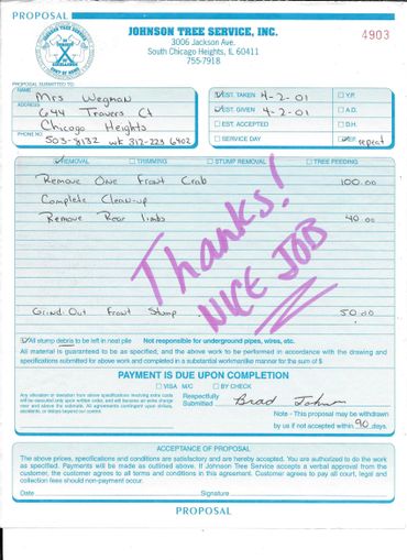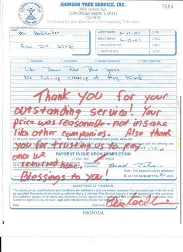 We are committed to giving our customers the best possible estimate on their tree removal and tree pruning. Estimates are fully itemized and always include a copy of our liability and workers' compensation insurance.